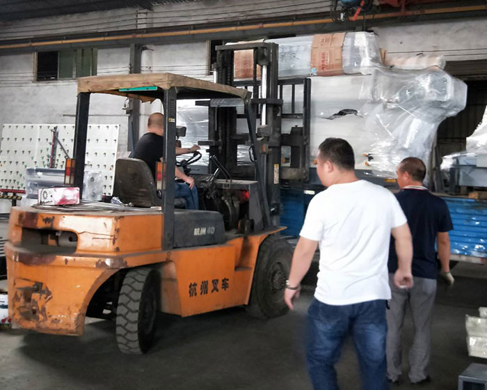 創世強石材機、巖板機、直邊機裝車發貨